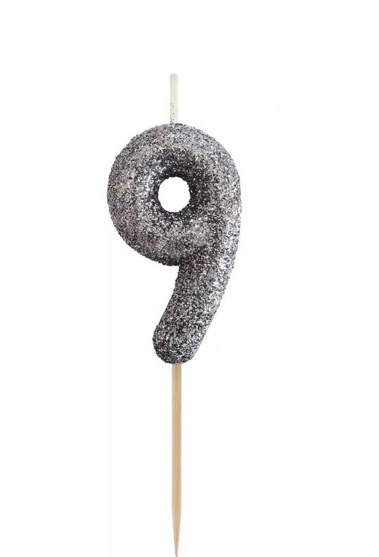 Sviečka č.9 trblietky čierna